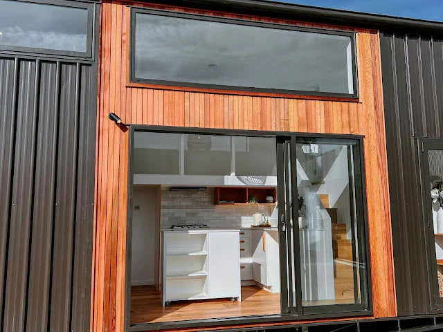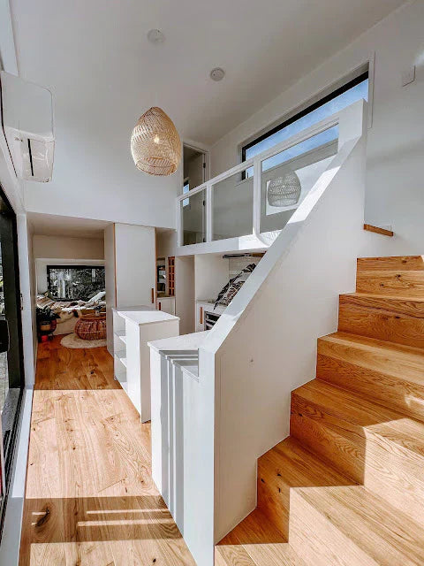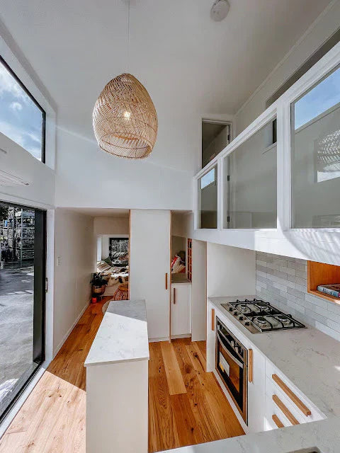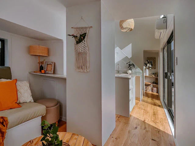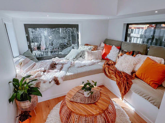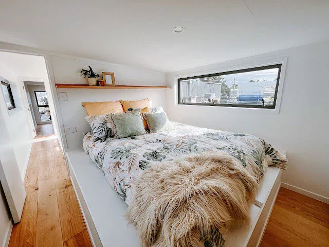Basata su un telaio in acciaio su misura, Sophie è ben equipaggiata con una presa in stile camper da 50 A con opzione da 100 A, allacci per acqua e fognature, garantendo un collegamento continuo alle utenze. La casa SEMI è inoltre dotata di prese GFI esterne, un rubinetto dell'acqua esterno e una presa marina impermeabile.