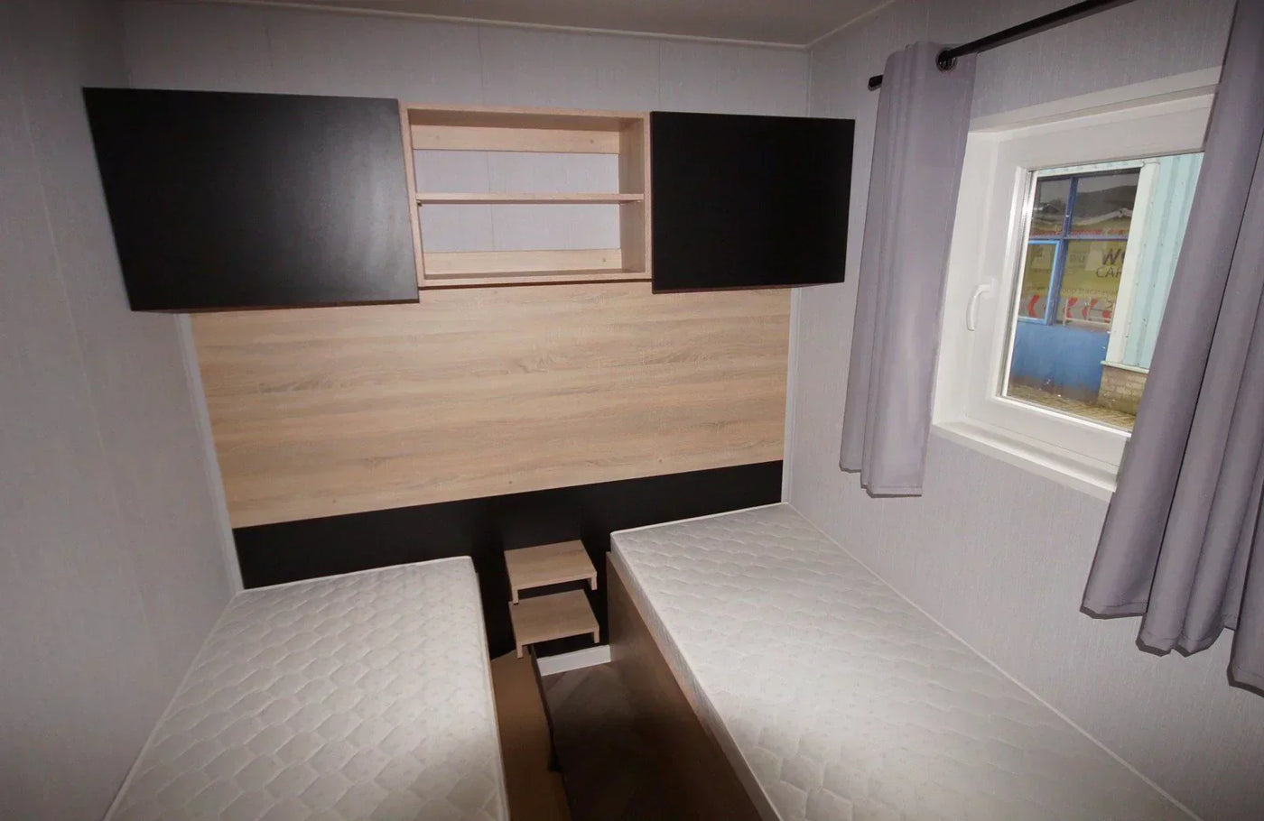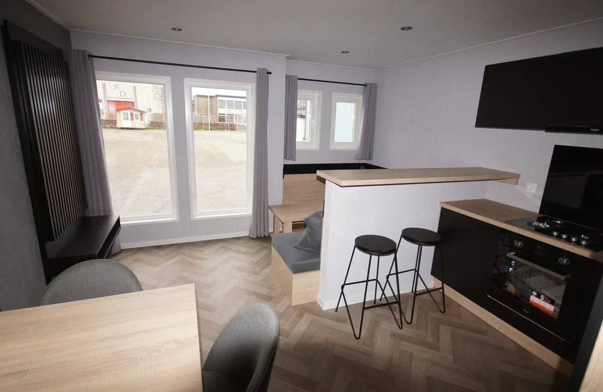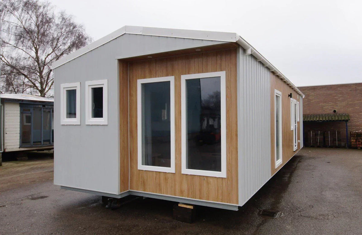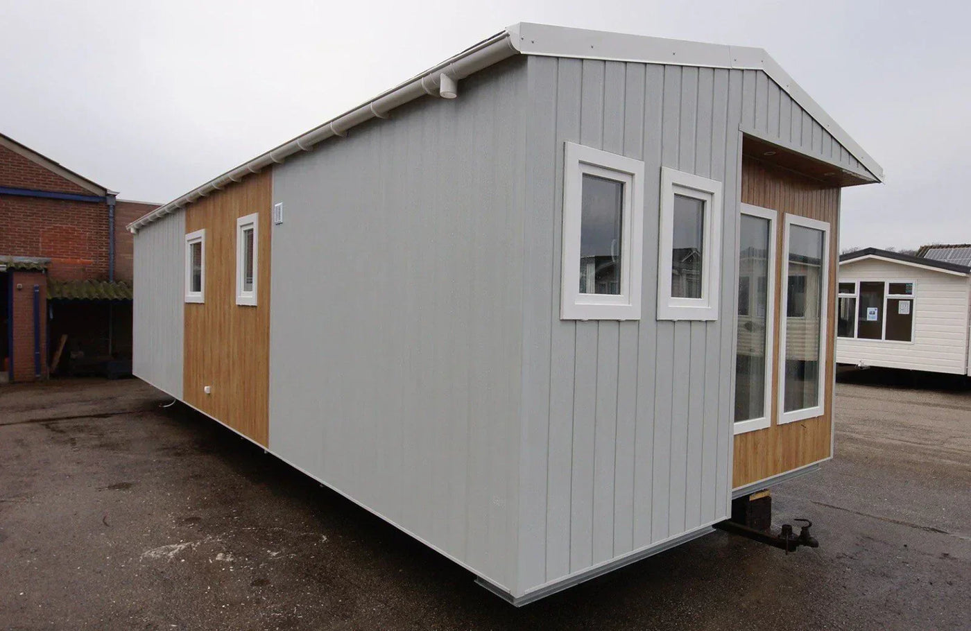 Doppi vetri Camera da letto 2 tetto in tegole Nuovo mobile container con rivestimento esterno in plastica, riscaldamento a pavimento, cucina di lusso, doppi vetri e tetto in tegole. Dimensioni: 10,40/10,10 x 4,10 mt