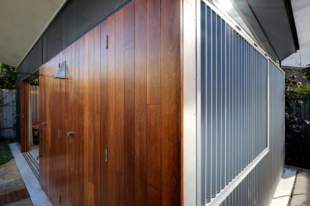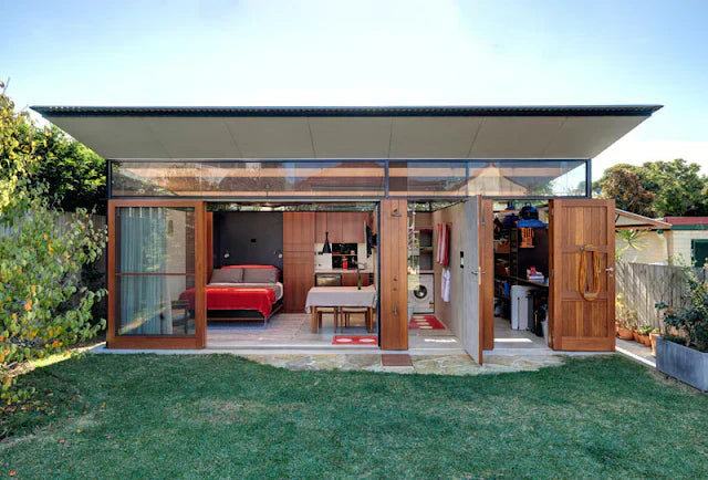Questo moderno monolocale DOGO da 20 piedi è progettato per single o studenti. Può essere installato in un cantiere edile. Facilmente smontabile e molto resistente. Ha molte finestre per inondarlo di luce naturale. Legno duro Blackbutt e metallo ondulato ricoprono l'esterno dello studio per conferirgli un aspetto elegante e moderno.