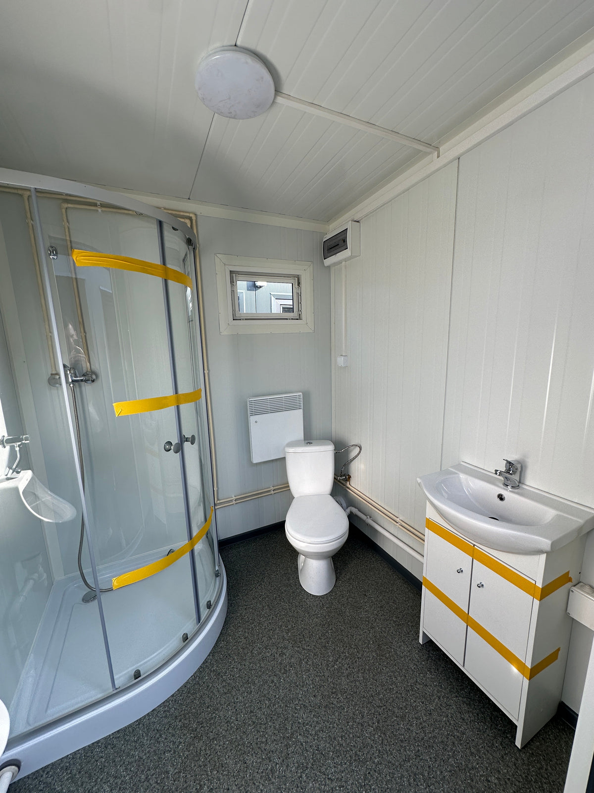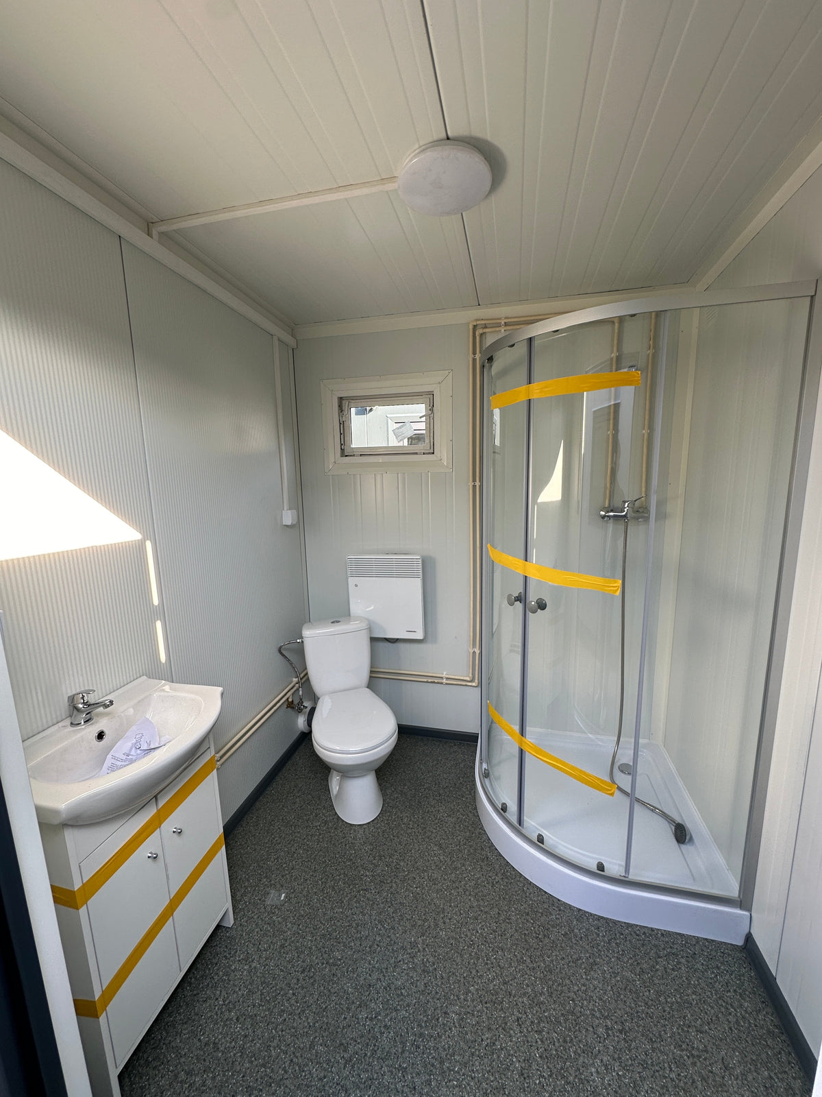 CONTENITORE SANITARIO 4,00 x 2,00 M CON WC E DOCCIA 2x servizi igienici 2x cabine doccia Orinatoi 2x lavello con...