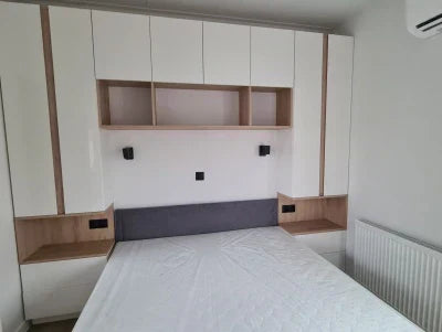 La camera da letto principale ha un lussuoso letto a molle con spazio per riporre gli oggetti, armadio a muro e connessione TV.