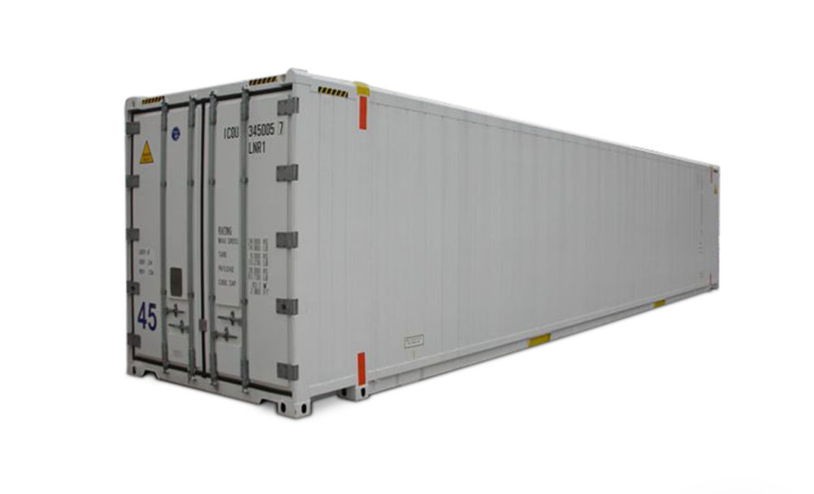 Il Container 45 è realizzato in acciaio Corten e isolato con schiuma poliuretanica. Anche il pavimento è in acciaio. L'unità ha una tara di 6.000 kg e un carico utile massimo di 28.000 kg. Ciò rappresenta un peso lordo totale di 34.000 kg. Il container reefer Pallet Wide alto 45 piedi ha le seguenti dimensioni all'esterno: 13.716 x 2.556 x 2.896 (lunghezza x larghezza x altezza in mm) e all'interno: 13.286 x 2.441 x 2.585 (lunghezza x larghezza x altezza in mm). L'apertura della porta misura 2.441 x 2.567 mm (L x A). Il volume del contenitore è 83,70 m3.